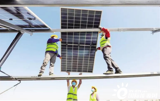 “項(xiàng)目于今年8月初開工建設(shè),目前支架基礎(chǔ)及太陽能電池板安裝正在火熱的施工過程中。”項(xiàng)目負(fù)責(zé)人全旭東介紹道,項(xiàng)目計(jì)劃9月30日完工并網(wǎng),工人們搶抓時間,在保證工程質(zhì)量的前提下,實(shí)現(xiàn)按期并網(wǎng),力爭早發(fā)電、早收益。
